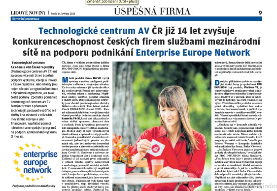 Celý článek, který vyšel v Lidových novinách v rubrice Úspěšné firmy, si můžete přečíst i stáhnout v příloze níže, nebo v naší sekci Publikace.